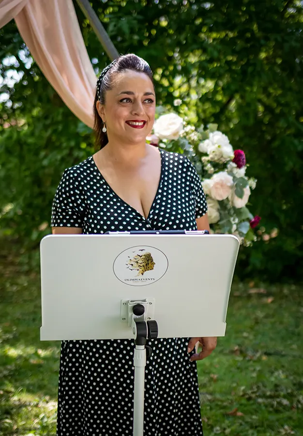 "Vom ersten Kontakt an war Olimpia uns schon so sympathisch, und unser erster Eindruck hat sich wie ein roter Faden durchgezogen. Sie hat sich immer toll um uns gekümmert! Sowohl für den Vortrag der Traurede, als auch deren Inhalt wie auch für den Gesang, hätten wir niemand Besseres und Herzlicheres finden können! Olimpia ist zu einem unserer Herzensmenschen geworden. Vielen Dank für alles!"