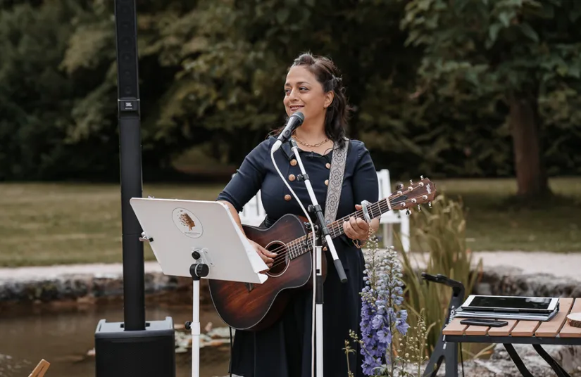Dazu kommt die musikalische Begleitung eurer freien Trauung mit live gesungenen Songs, die wir gemeinsam auswählen und die eure Zeremonie zu eurem Moment machen.