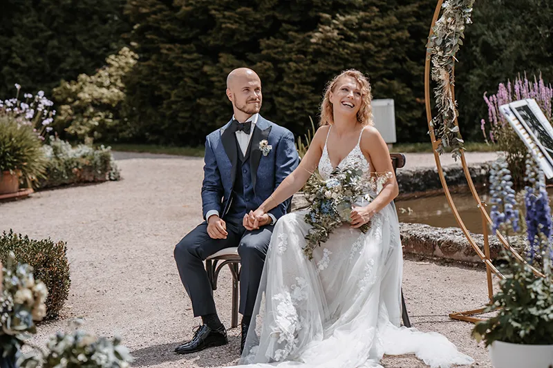 Schon beim ersten Treffen auf der JA! Hochzeitsmesse im Schloss Filseck in Uhingen war klar: Hier passiert gerade mehr als ein nettes Kennenlernen. Zwischen Gesprächen, Lachen und ersten Umarmungen wurden wir gegenseitig große Fans. Aus diesem Moment ist etwas gewachsen, das geblieben ist.
