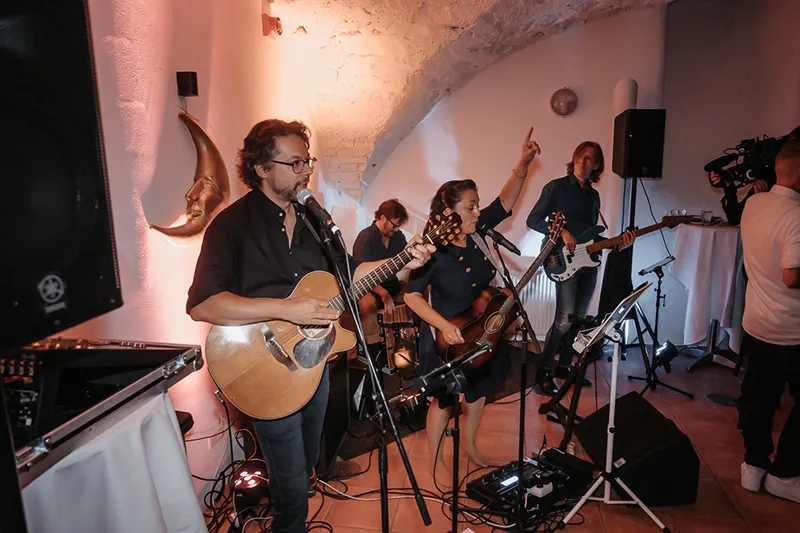 Julia und Flo entschieden sich für das Komplettpaket: freie Trauung, musikalische Begleitung der Zeremonie und am Abend unsere Band zu4iert fürs Abendprogramm. Ein Hochzeitstag wie aus einem Guss – von den ersten Worten bis zum letzten Song.
